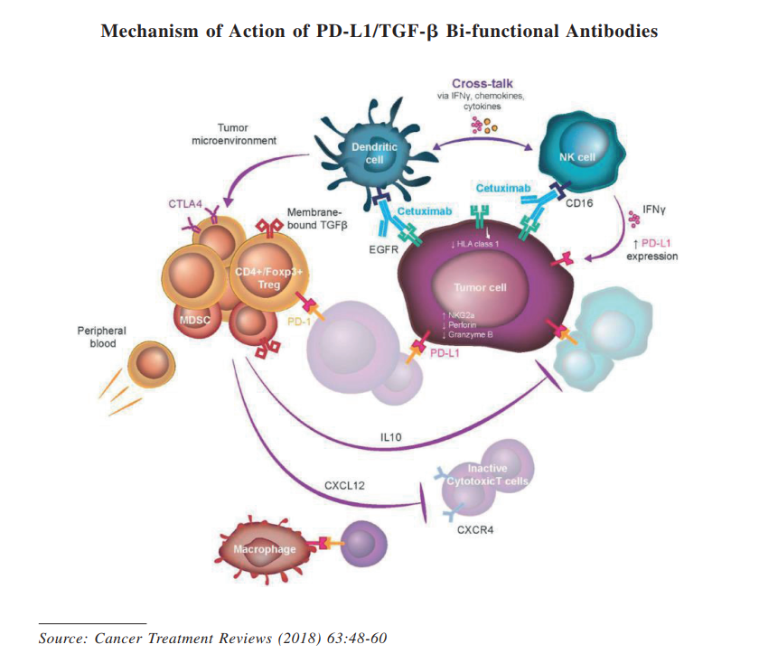 TST005 is a bi-functional fusion protein composed of the truncated extracellular domain of the TGF-RII receptor serving as a TGF- trap fused to a humanized anti-PD-L1 IgG1 antibody (AM4B6 mAb). By blocking both PD-L1-interaction with PD-1 and TGF- mediated inhibitory activities on T-cell infiltration and T-cell activity, PD-L1/TGF- bi-functional antibodies can effectively prevent tumor cells from escaping immune regulation.